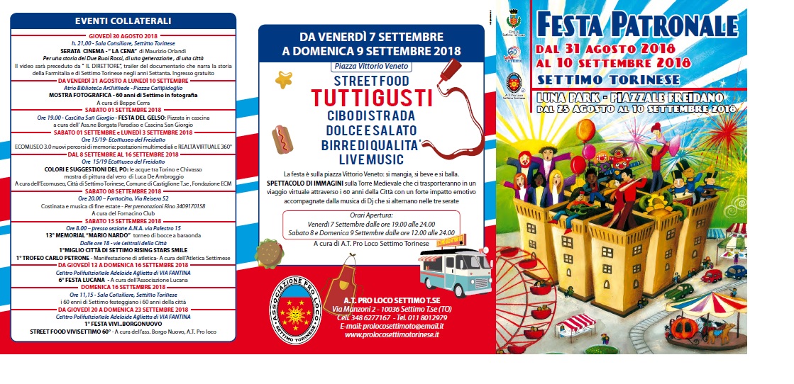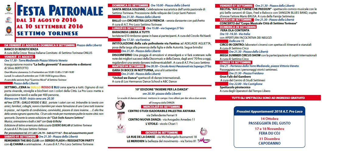 FESTA PATRONALE 2018SETTIMO TORINESEDAL 31/08 AL 10/09 |
